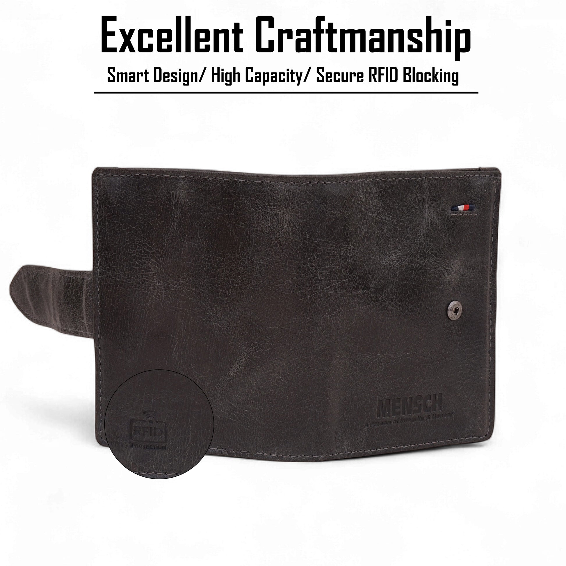 Front Button Lock Closure: Stylish and functional button lock keeps the wallet secure while adding a premium touch.