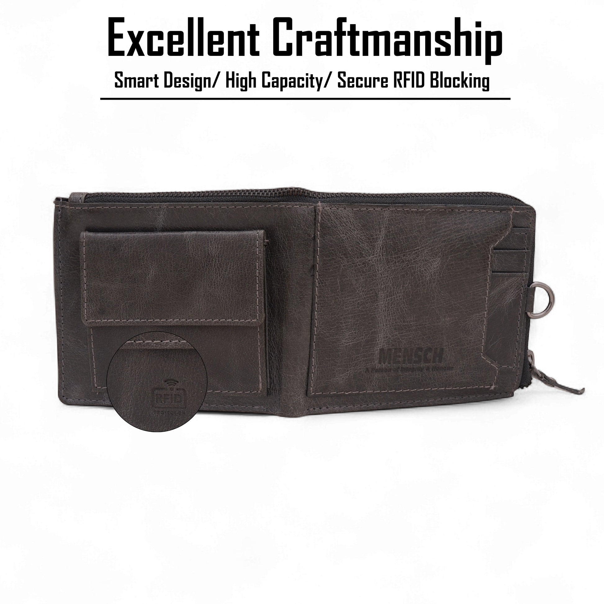 MENSCH® Genuine Leather RFID-Blocking Bifold Wallet for Men