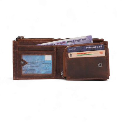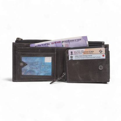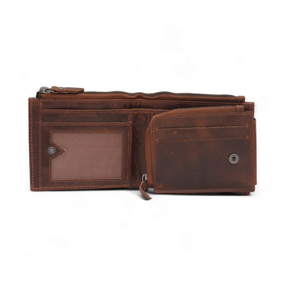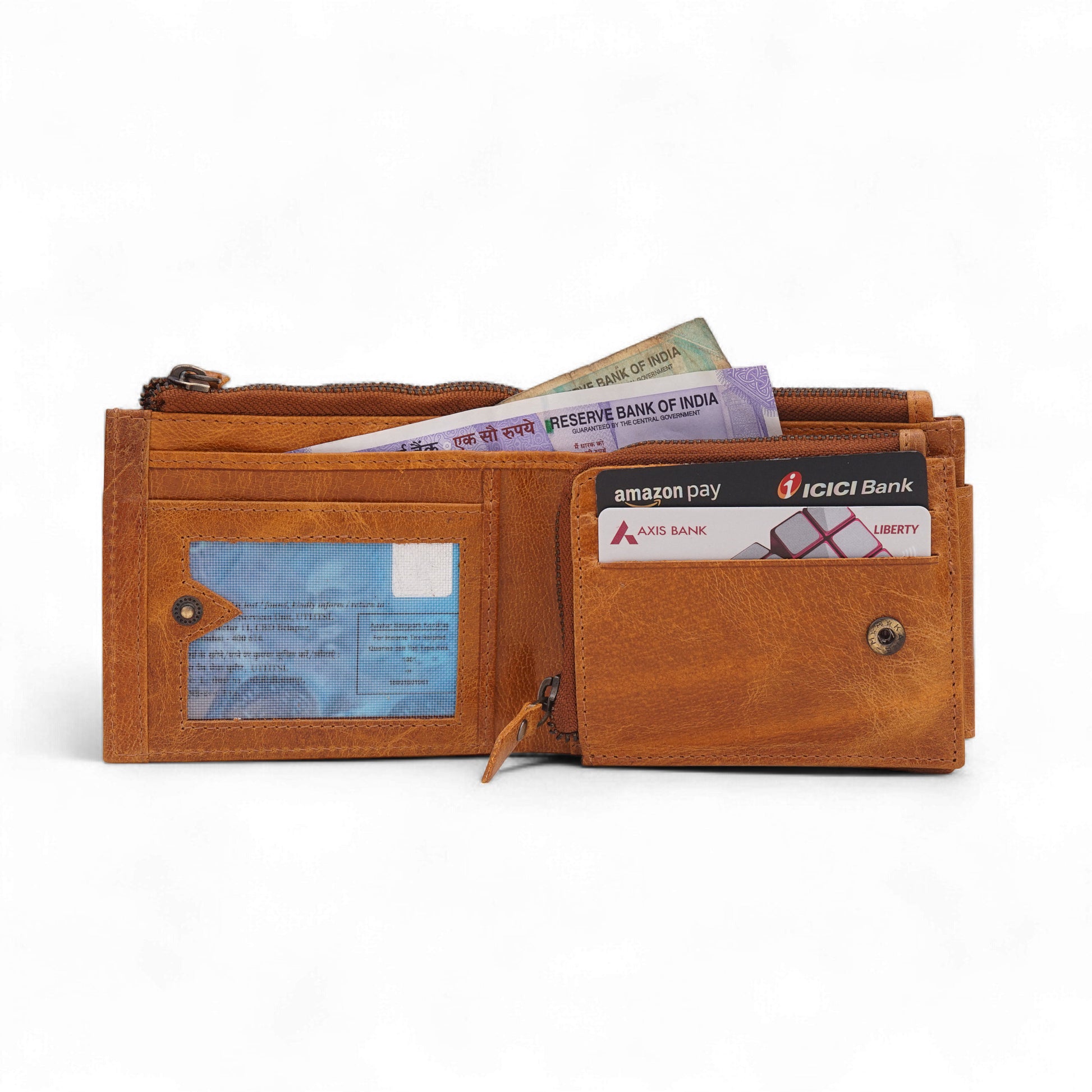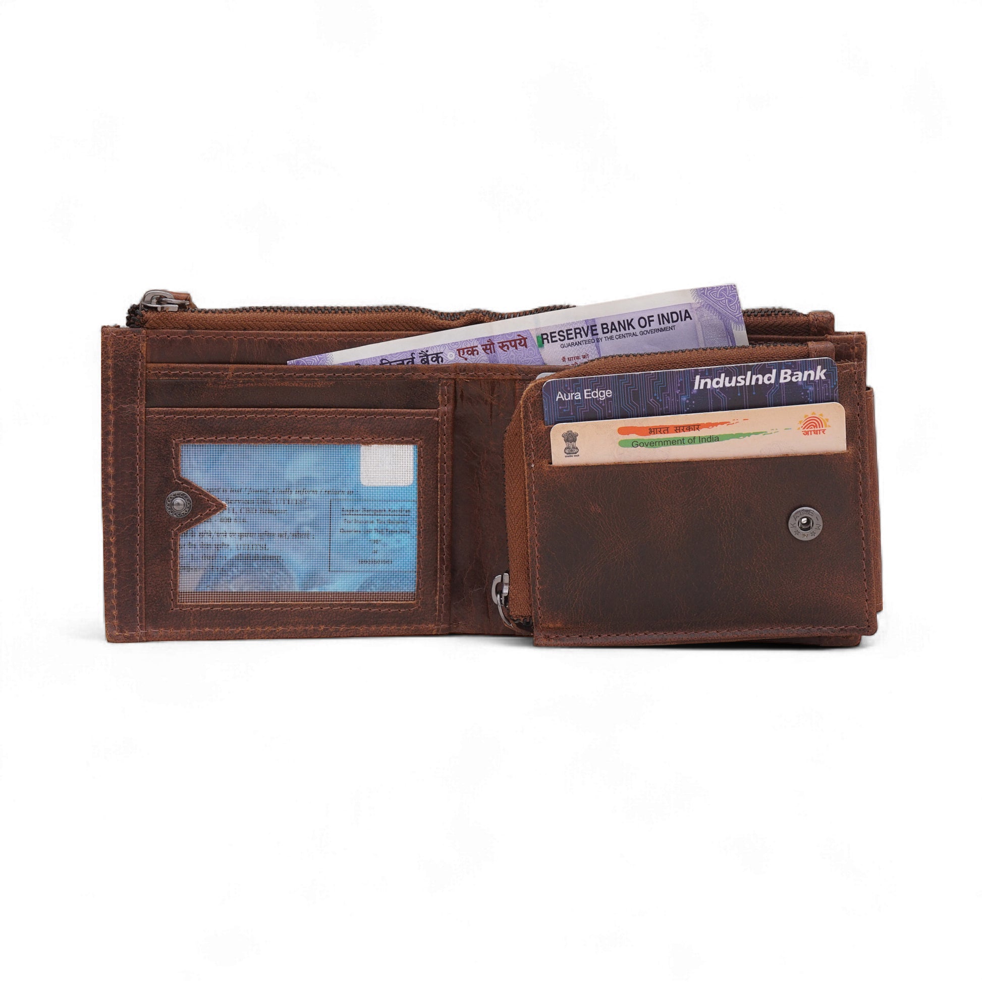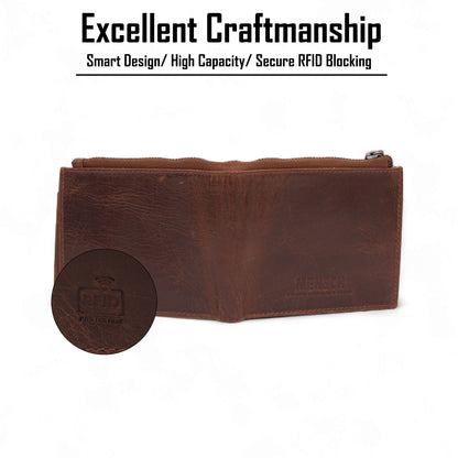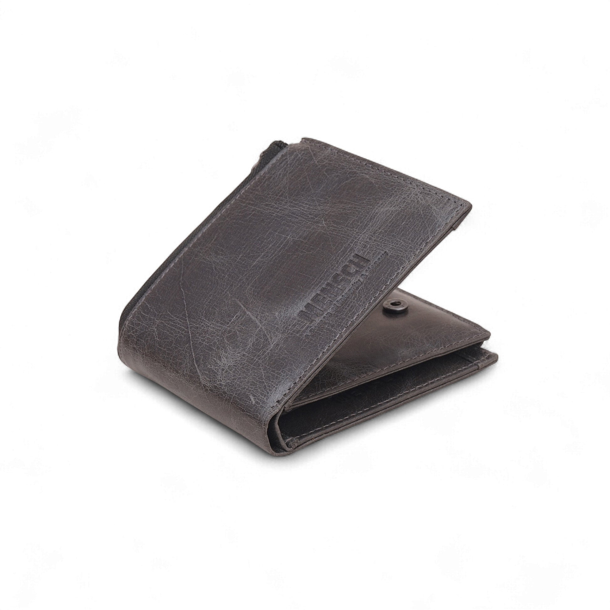 Vintage Crunch Leather: Rich in texture and personality, the distressed finish highlights natural grain patterns, making every wallet one of a kind.